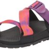 - UPPER: Adjustable polyester jacquard webbing with injection molded ladder Lockbuckle and synthetic trims MIDSOLE: Women’s specific LUVSEATCare+ EVA midsole Vegan-friendly construction OUTSOLE: Non-marking ChacoGriprubber compound 3.0mm lug depth